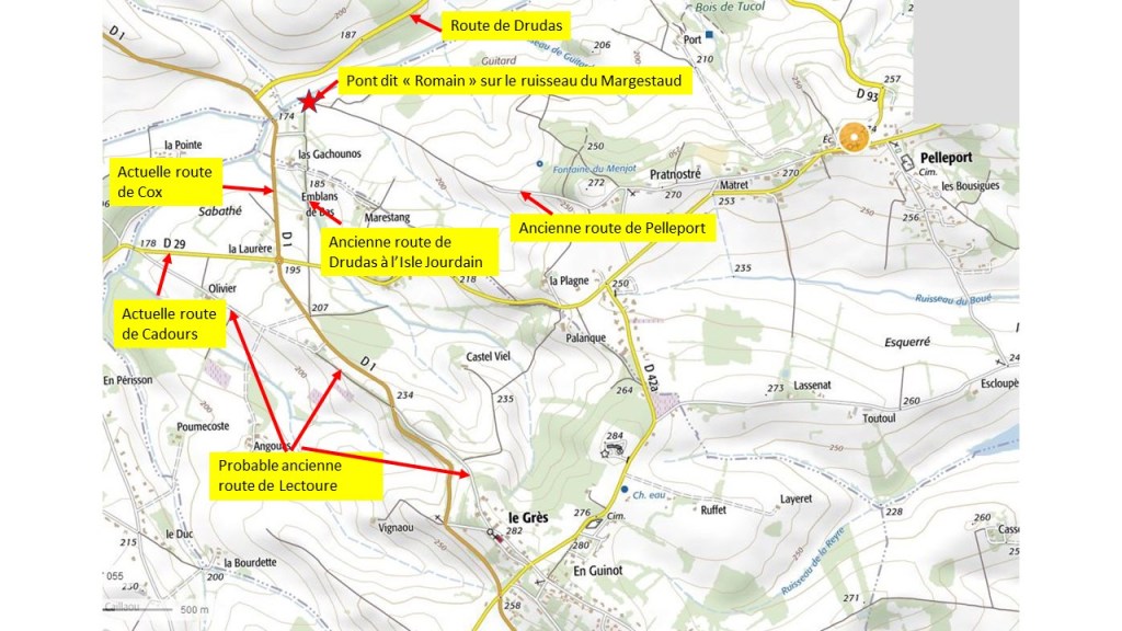 Sur les indications de Jean Fontaine, Michel Ferrier et Marcel Sultana partent à la recherche du pont supposé Romain, et le trouve à deux pas de l’ancienne route de Pelleport à Puysségur.
