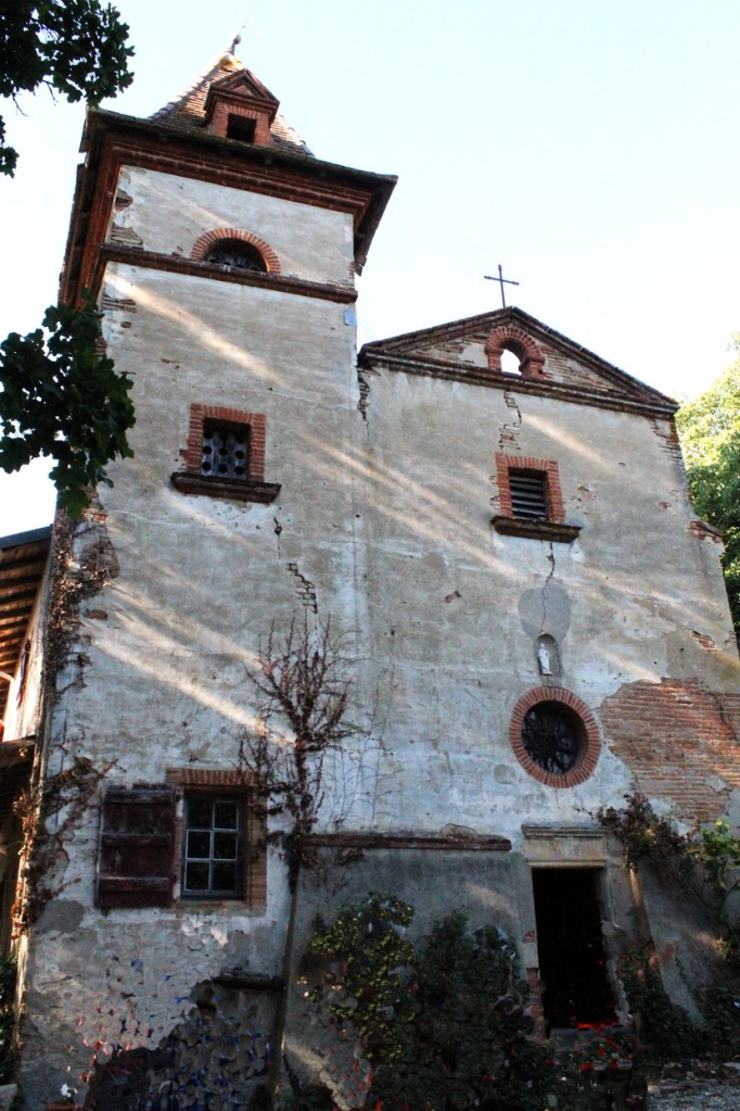 L’allée des cèdres géants, qui ondule des moulins jusqu’à l’arrière du château, a été plantée en 1845, année de construction du bâtiment à trois étages que le Savenésiens nomment fièrement « Le Château ». C’est une belle demeure de maître, construite par la famille toulousaine Rivals qui vient tout juste d’acheter le domaine. Elle forme un U avec les deux corps de ferme que nous allons visiter. Une orangeraie, un vivier, mais surtout un château d’eau et un puits à noria et pompe élévatrice en complètent les aménagements. En se déplaçant vers l’avant du « château » nous découvrons, en façade, un escalier monumental conduisant à la terrasse du premier étage. Les Savenésiens ont coutume de venir s’y faire photographier le jour de leurs noces. Nous traversons le jardin planté d’essences exotiques et pénétrons dans la cour de la ferme. Ses deux bâtiments, bien parallèles, sont distants de 35 mètres et accusent 50 mètres de long. Une grille ouvragée les sépare du jardin du château. Les dépendances du premier bâtiment, à ouvertures plein cintre, sont encadrées, côté château par la maison à étage de Jean Couseran. Avec ses fenêtres cruciformes, cette maison de maitre est une vraie curiosité de la fin du 17ème siècle. À l’autre extrémité se trouve la chapelle ND de Pitié, construite vers 1700. On y trouve des matériaux provenant de la chapelle primitive, une pierre sacrée incrustée dans l’autel et des plafonds voutés peints en 1843 par Gian-Antonio Pédoya, peintre Italien spécialisé dans les peintures décoratives, arabesques, faux marbres…